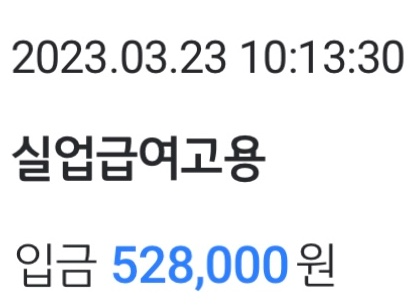 1차 실업급여 출석하고 받은 금액은 528,000원(나의 경우 일액이 66,000원). 언제 입급되나 궁금했는데 출석한 다음날 오전 열시에 입금되었다.