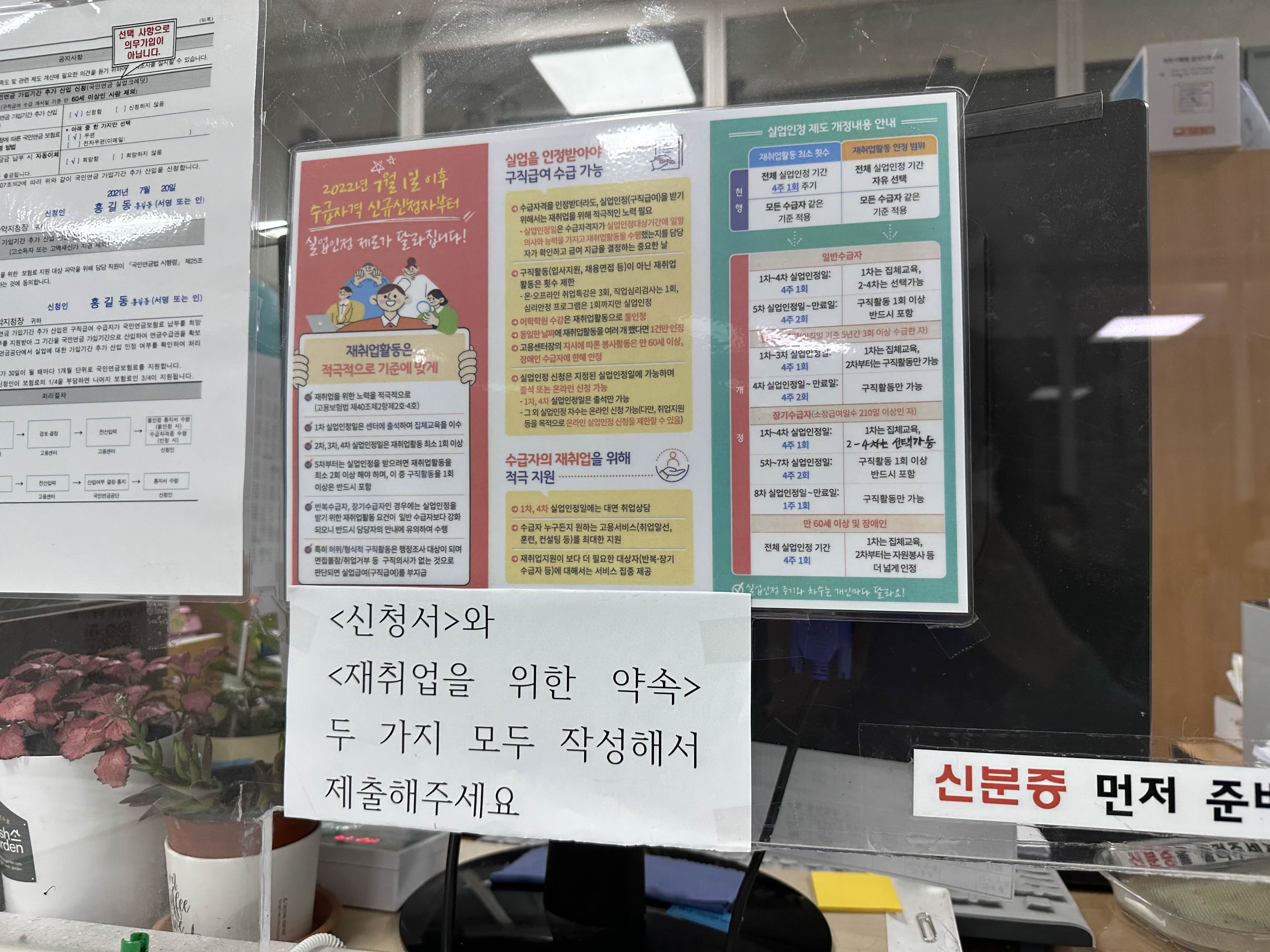 위치는 실업급여(구직급여) 신청했던 창구를 정면으로 봤을때 우측에 있다. 시간이 지나면 사람들이 줄서고 대기하는 인원들이 생겨서 거기에서 기다리면 된다.