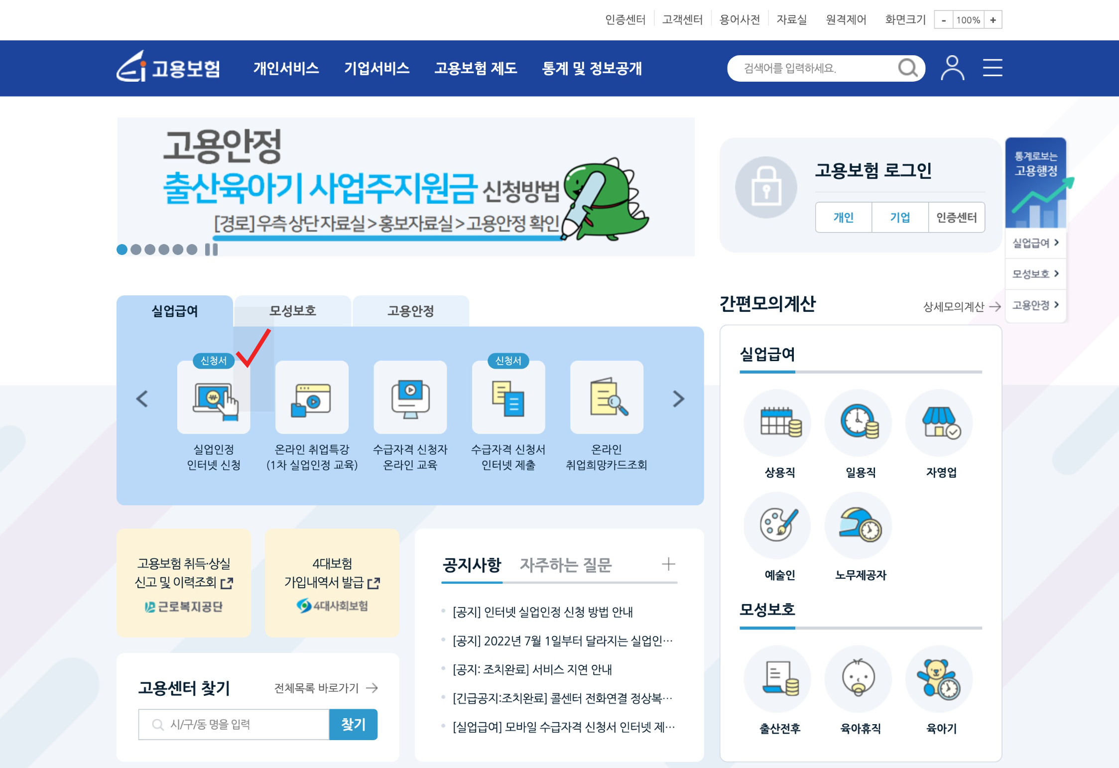 이제 고용보험 사이트로 가서 실업인정을 인터넷으로 증빙한다.