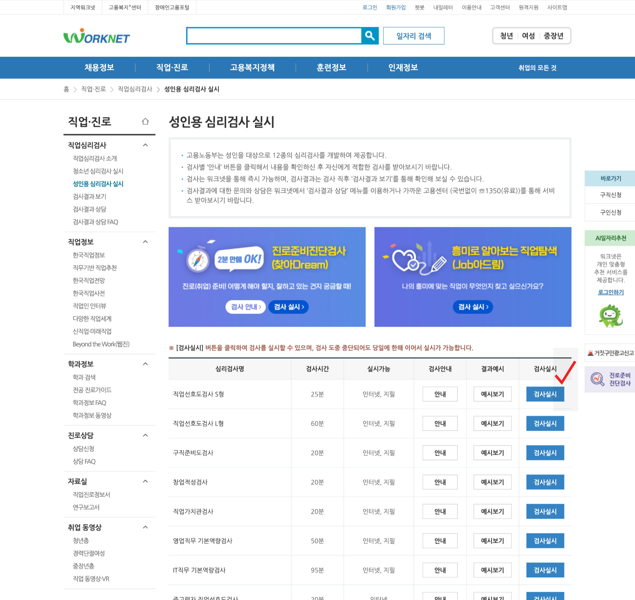 나는 워크넷에서 직업심리검사를 통해 실업급여 재취업활동을 인정받았다.