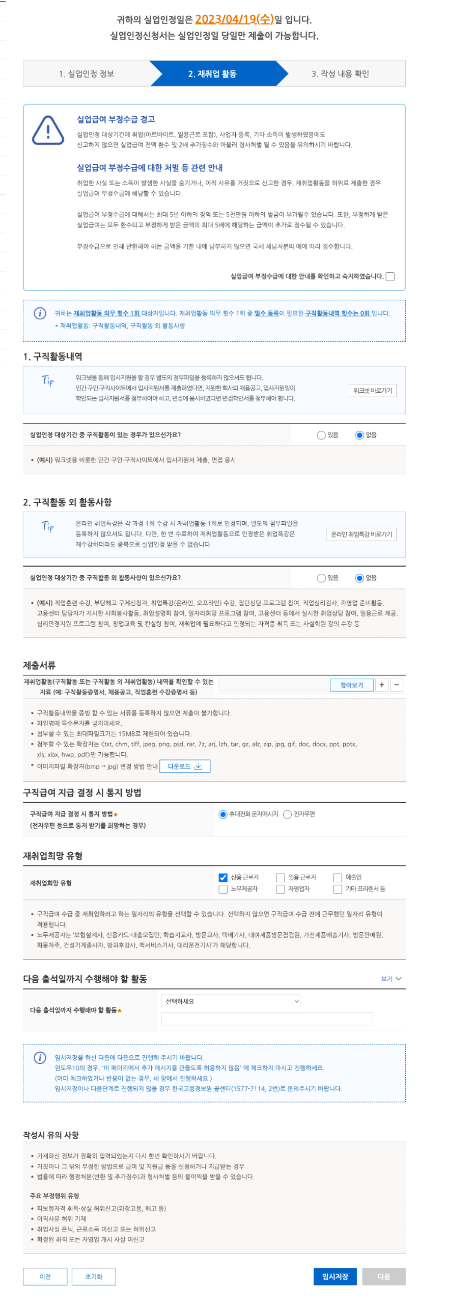 - 4월 19일(수) : 2차 실업인정 인터넷 제출
