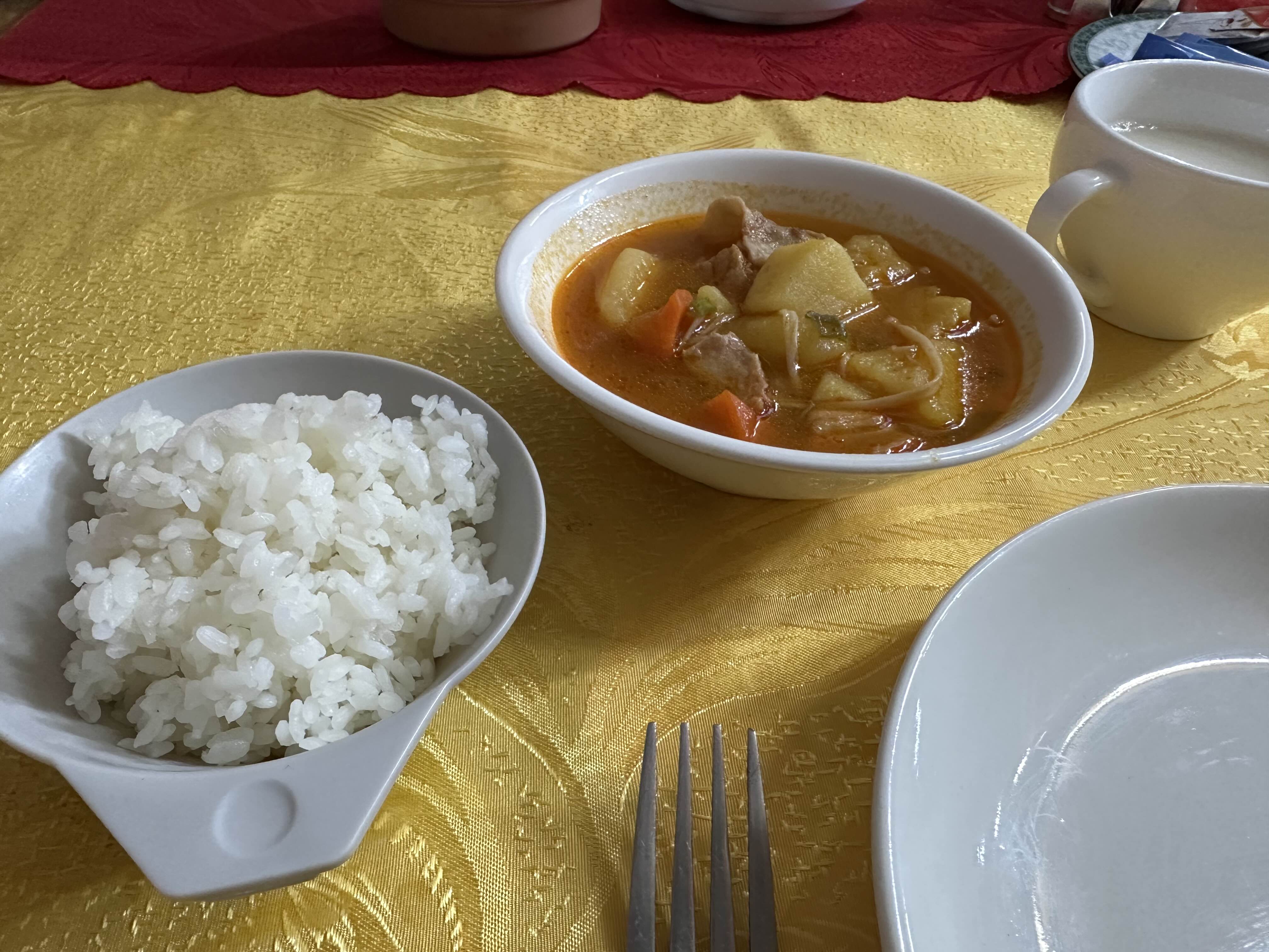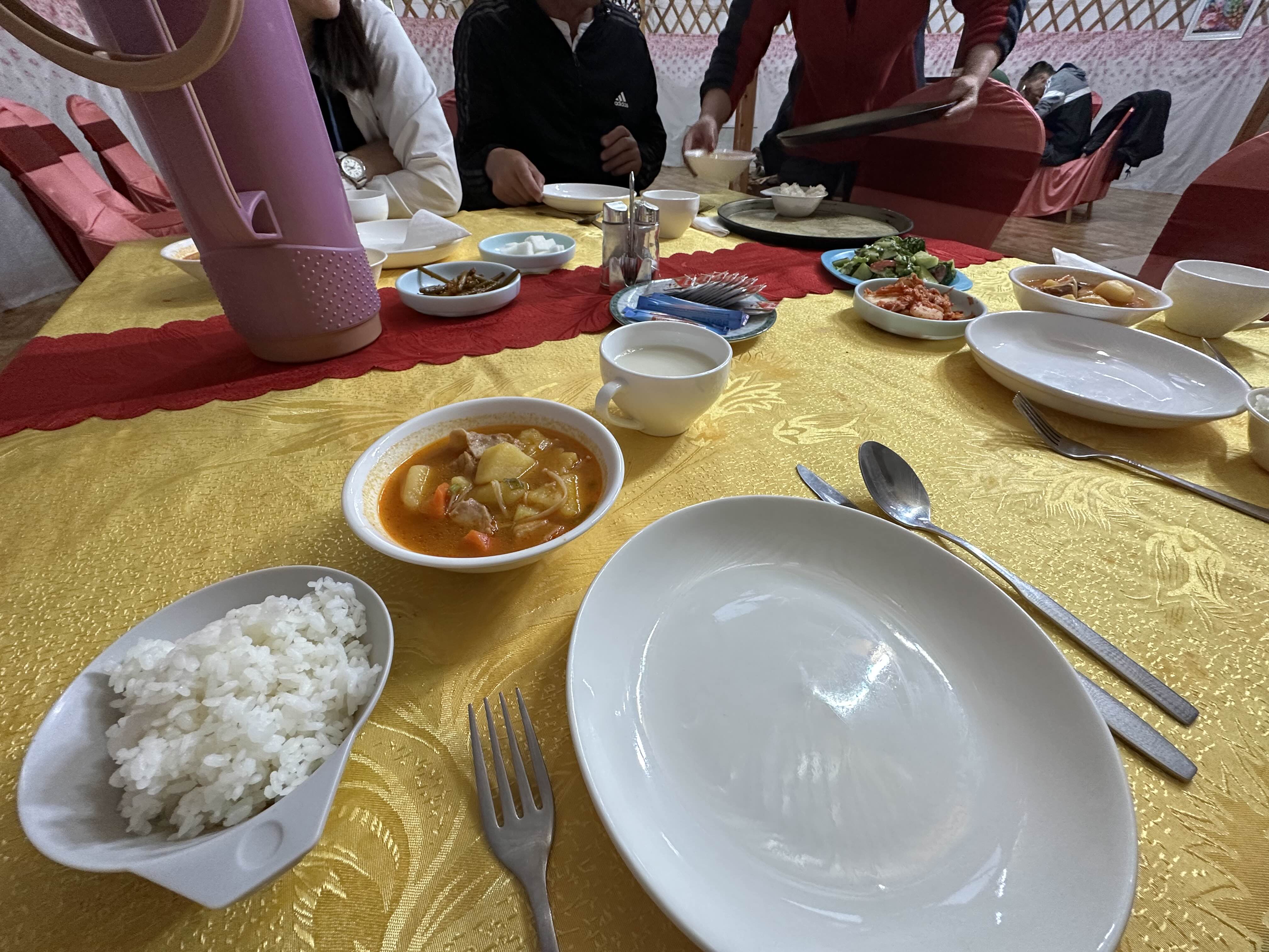 여행자 게르라서 그런지 음식이 완전 현지식만 나오진 않았다. 몽골 음식 되게 닭도리탕 같이 생겼네 했는데... 그냥 닭도리탕을 만들어 주신 거였다. 맛은 나쁘지 않고, 약간 연한 맛? 몽골에서는 닭을 원래 잘 안 먹는다고 한다. 그래서 양고기나 소고기보다 보통 조금 비싸다.