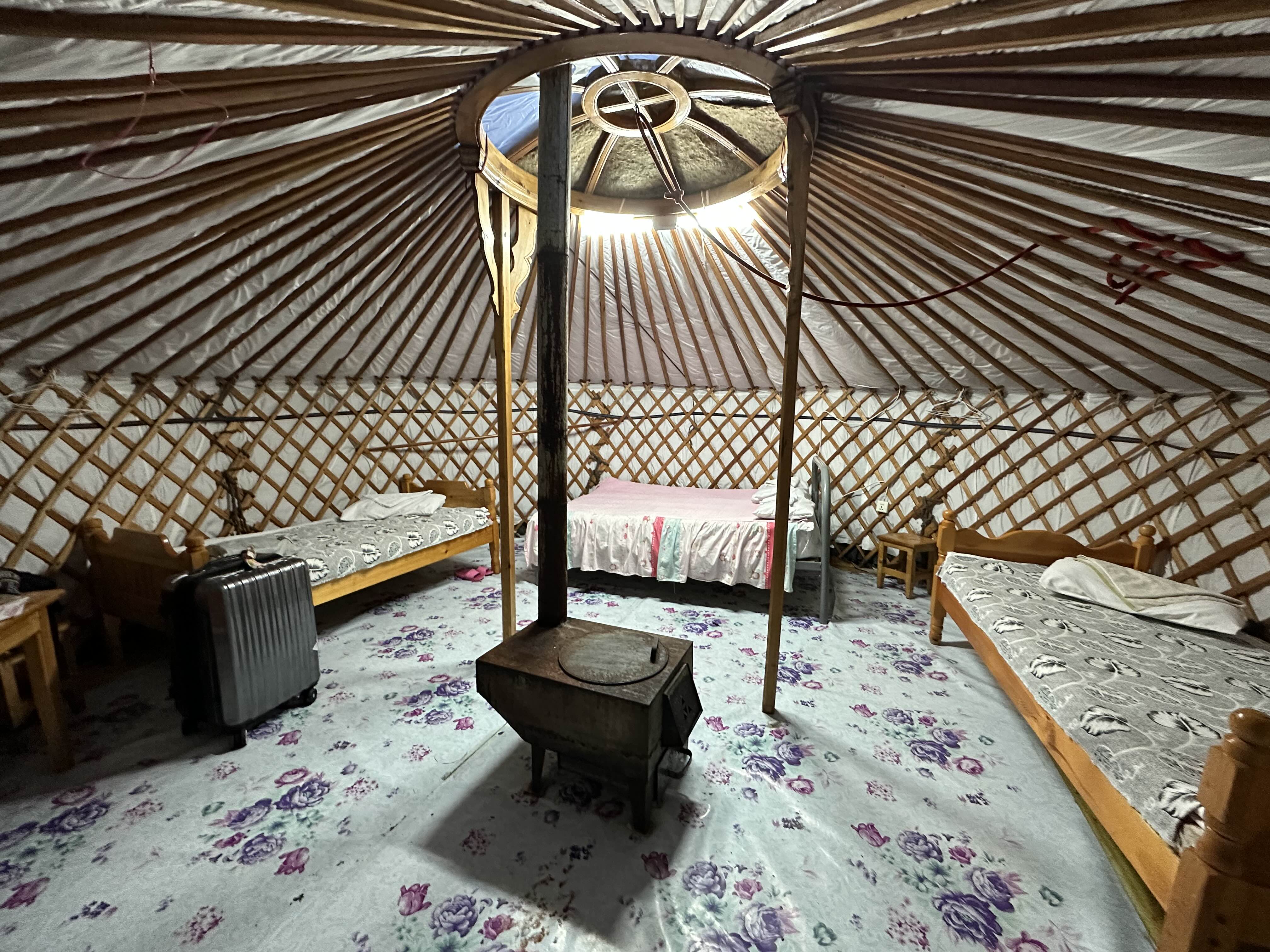 드디어 마주한 게르! 게르는 호텔의 룸같은 개념이 아니라 하나의 집 같은 개념이다. 그래서 여러 명이 단체 여행을 가면 인원수에 맞게 게르가 배정되고, 한 명당 한 침대를 쓰는 것이 일반적이다. 근데 나는 2인 패키지여서 게르 하나를 다 썼고, 그래서 너무 편했다. 자는 침대 말고 다른 침대에는 이런저런 짐을 올려두고 썼다.
