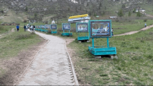 아리야발 사원 곳곳에는 색채가 강한 장식물들이 있다. 우리한테는 익숙한 언어가 아니라서 그렇지만, 가이드님이 설명해준 내용에 따르면 사원 곳곳에 옛 몽골 문자로 새겨진 게 있다고 한다. 몽골 문자는 소련의 지배를 받게 되면서 폐지되고, 러시아 키릴 문자로 대체되었다. 몽골인인 가이드님은 일부 읽을 줄 아시는 듯했다.