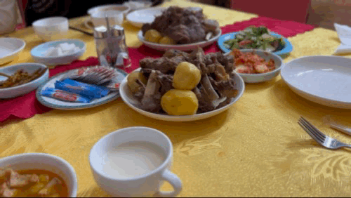 허르헉은 몽골의 대표적인 전통요리이다. 압력솥 안에 재료들을 넣고 뜨겁게 달군 돌을 넣어 익히는 방식으로 만든다. 감자 맛이 한국과 다르고 특이하다. 더 단 맛이 강하고 쫀득하다고 해야하나? 맛있었다. 사실 양을 거의 못 먹어서 한국에서 양갈비로 트레이닝도 하고 갔는데, 생각보단 아예 못 먹을 맛은 아니었다.