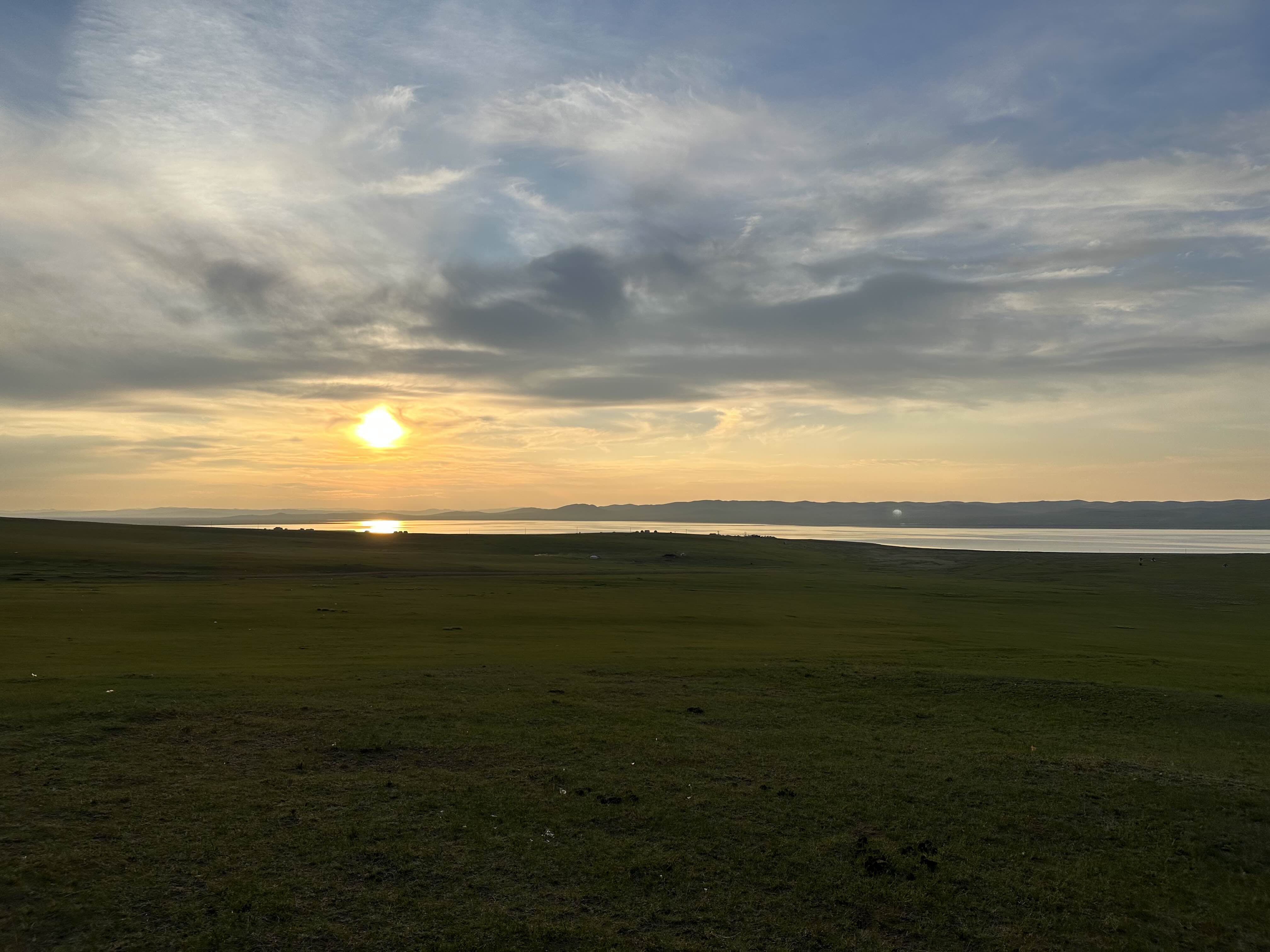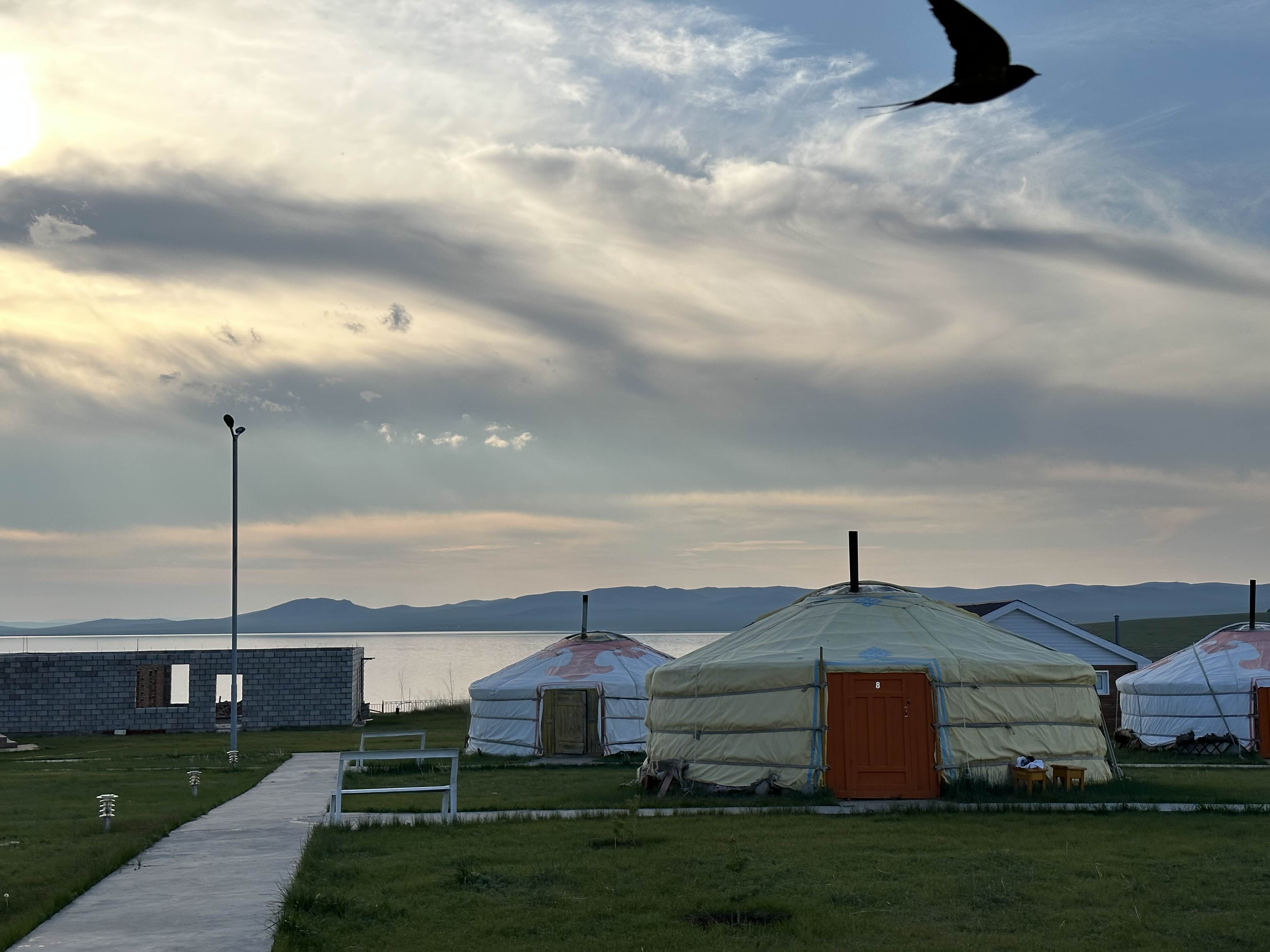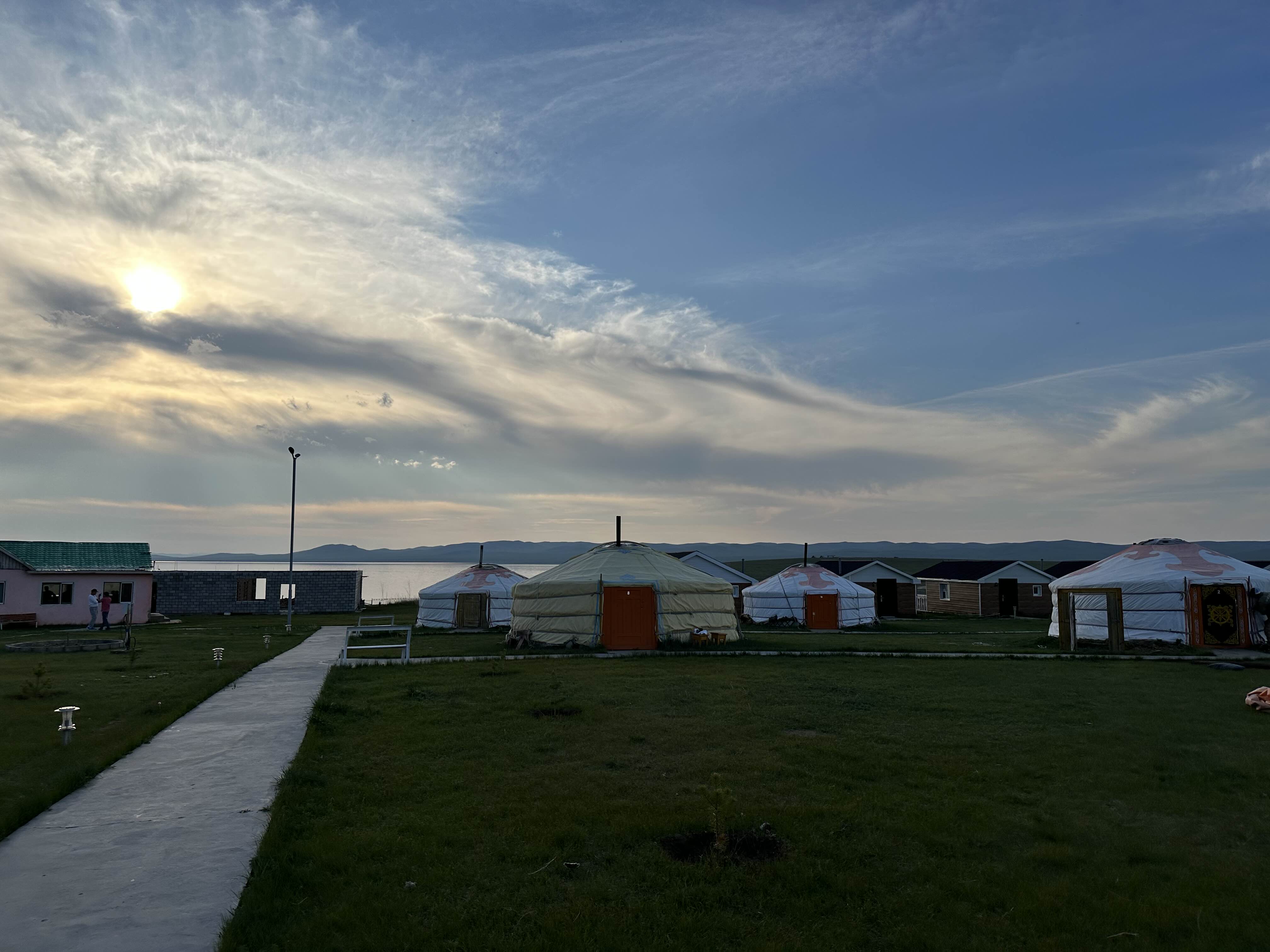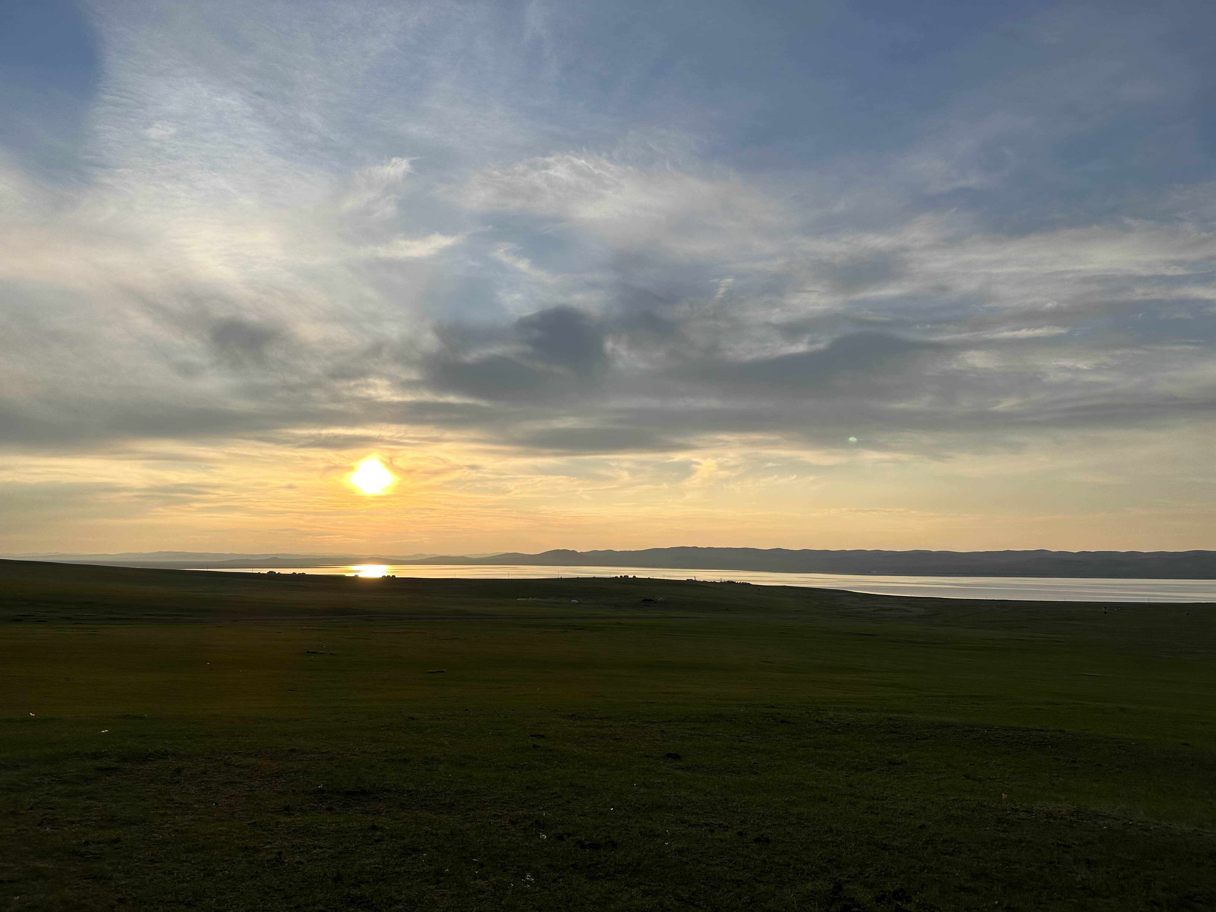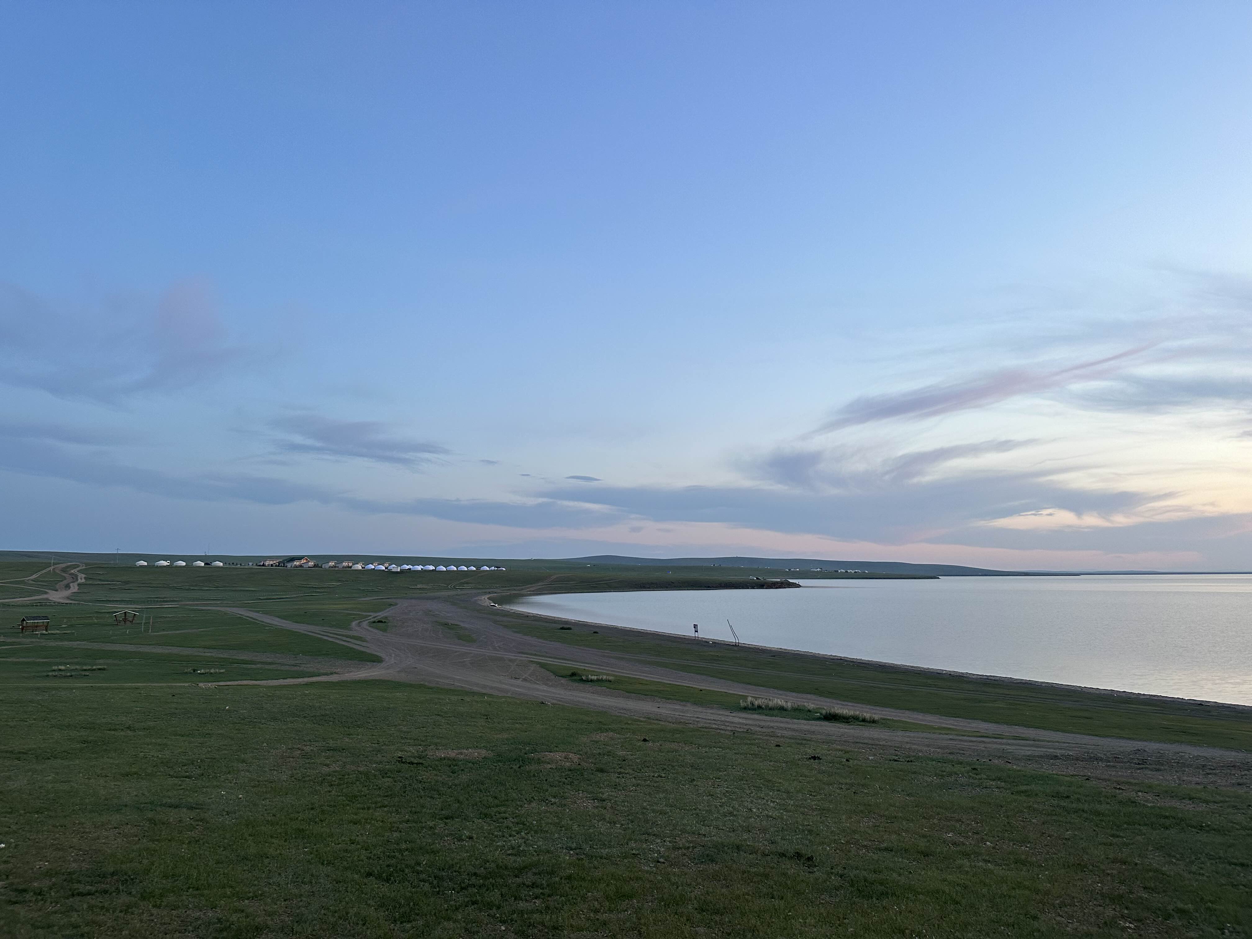 해가질 때가 되니까 서서히 하늘이 물들어가고 있는 어기호수 모습. 숙소에 묵는 다른 관광객들은 근처에 에어베드를 펴고 누워서 노래를 틀고 있었다. 몽골 애기들이 같이 누워서 까르르 웃는데 귀여웠다. 나를 몽골사람이라 생각했는지 지나가면서 "쎄노!" 하고 가던 어린이. '쎄노'는 몽골말로 안녕이라는 뜻이다. 보통 어린이한테 쓰는 인사다. 우리나라 '안녕'='쎄노', '안녕하세요'='센베노' 아닐까 싶다.