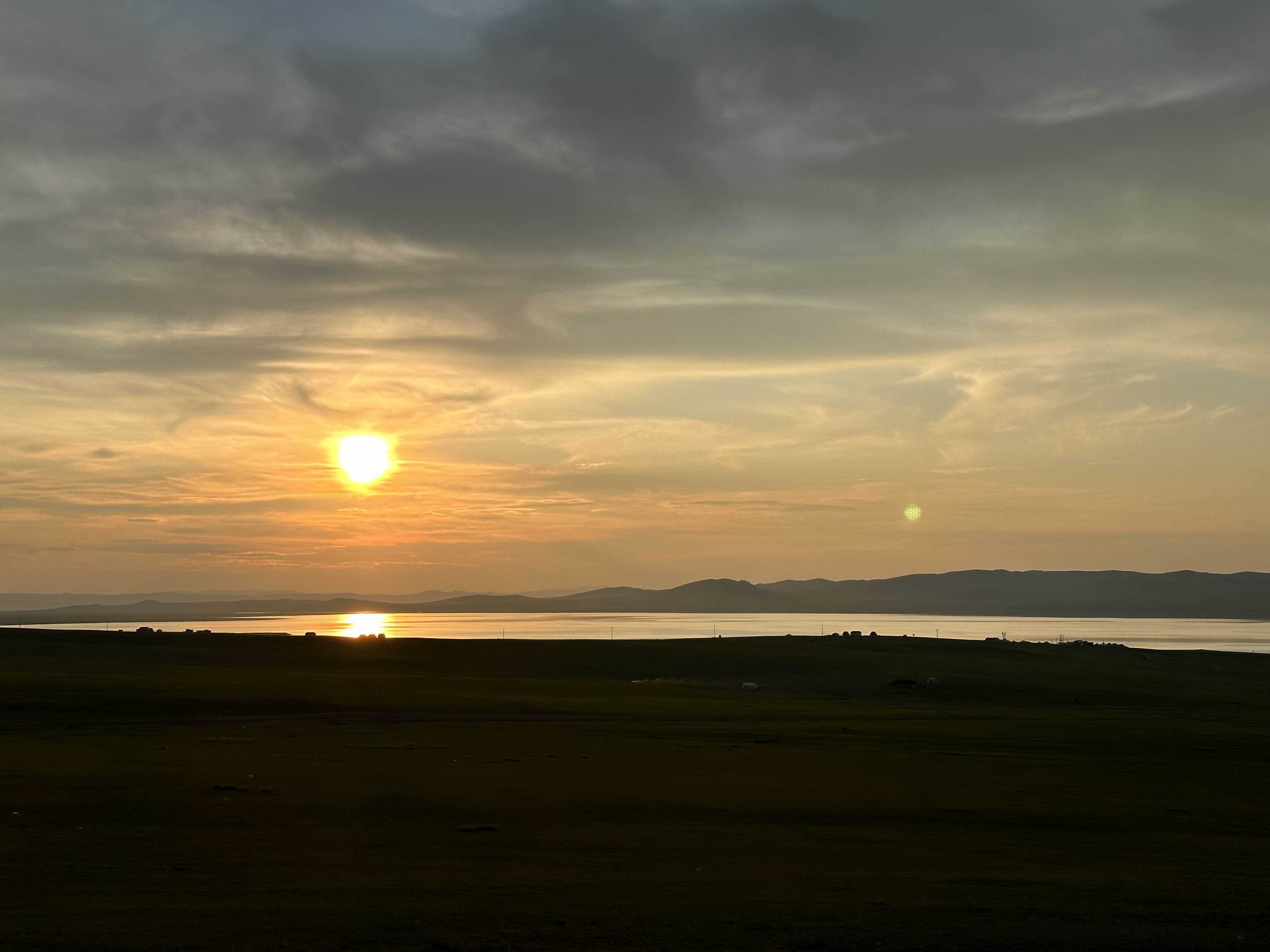 6월 초라 그랬는지 몽골은 해가 무척이나 길었다. 오후 9시가 되어서야 우리가 생각하는 일몰뷰를 볼 수 있었다. 붉게 물든 노을과 그 노을을 그대로 투영해 주는 어기호수. 어딘가 따뜻해 보이는 게르들이 목가적인 분위기를 연출해주고 있었다. 평화로운 몽골의 모습.