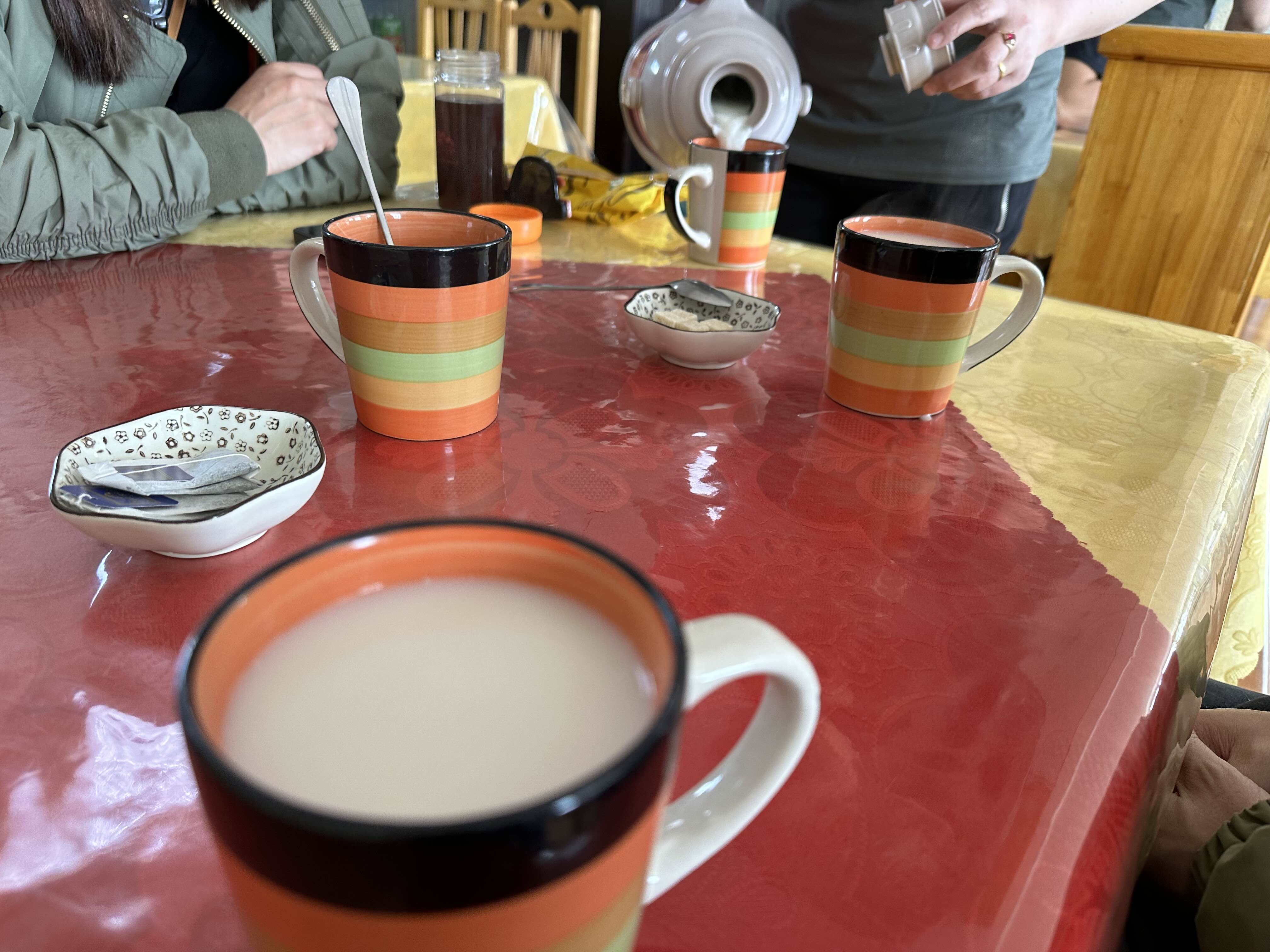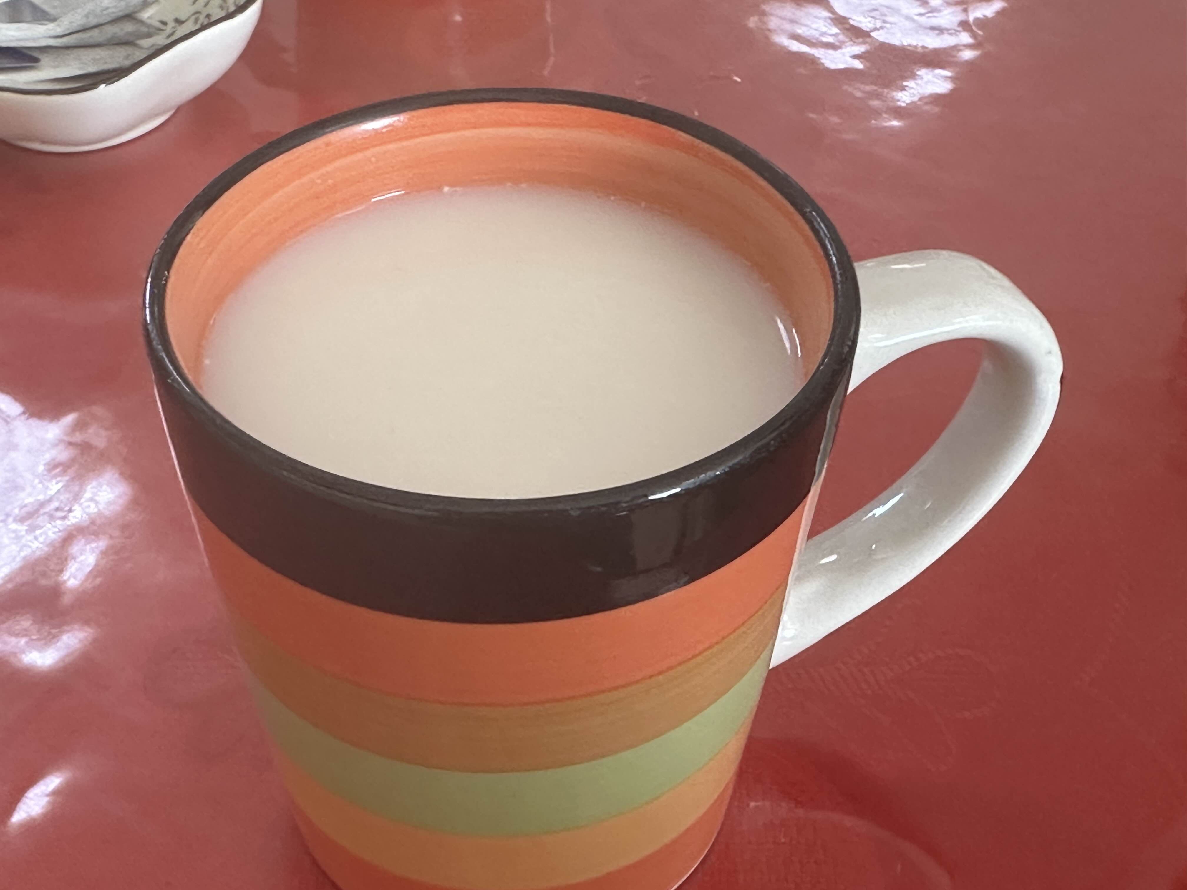 이제는 익숙해진 우유차. 막 못 먹겠는 느낌은 아니지만, 그렇다고 해서 입에 착 달라붙어서 맛있는 차는 아니다. 우리나라 보리차 같은 개념이려나 싶다. 식사를 하러 가면 종종 나온다.
