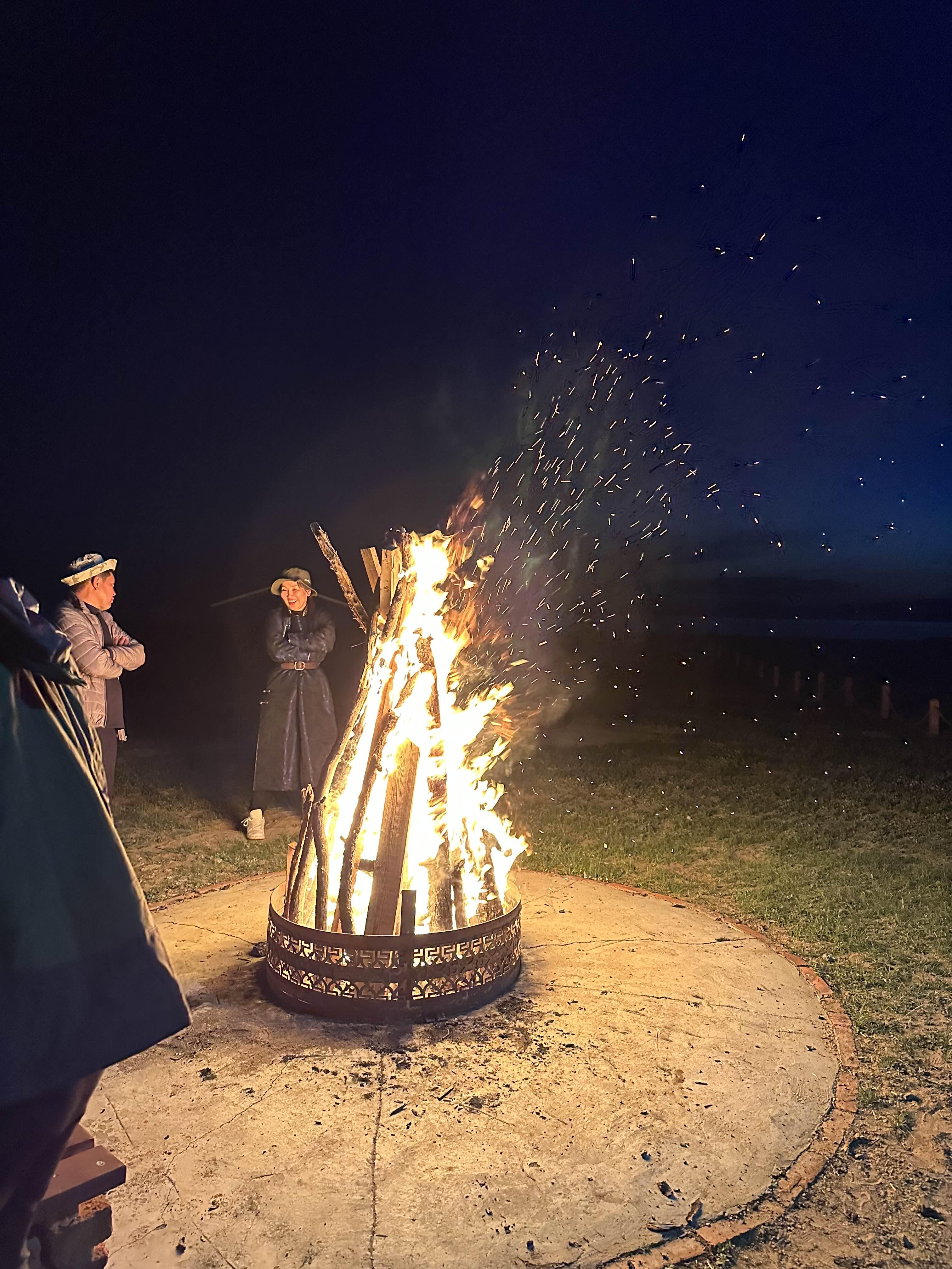 인싸이신 가이드님이 몽골 노래 몇 마디를 부르셨고, 다른 몽골분 들도 일부 조금 따라 부르셨다. 자연으로 둘러싸여 어둠이 내려앉은 어기호수, 알아들을 수 없지만 듣기 좋은 몽골 노래, 장작이 타면서 내는 소리와 따뜻한 온기... 그 순간을 어딘가에 넣어 간직하고 싶을 정도로 분위기가 좋았다.