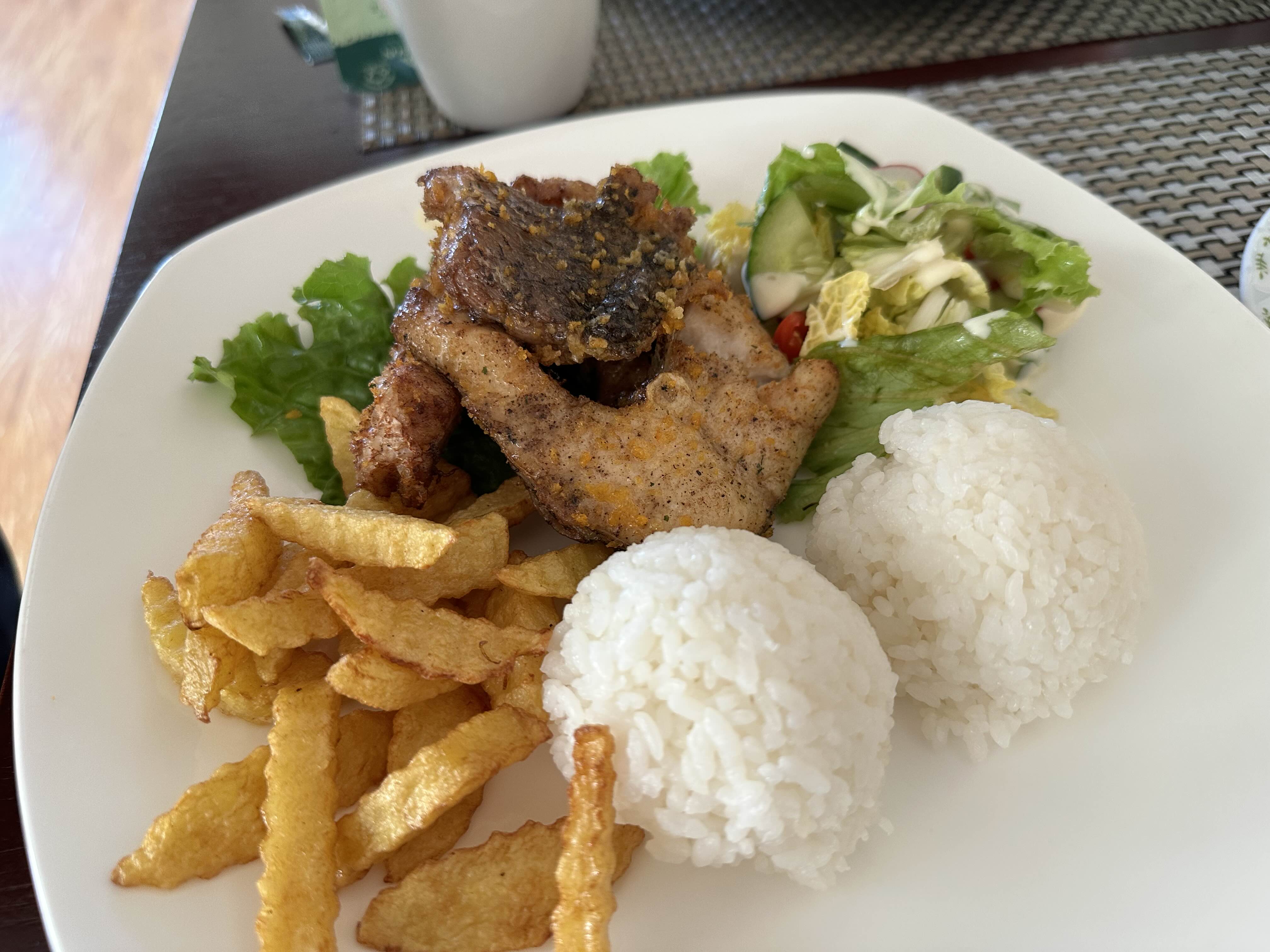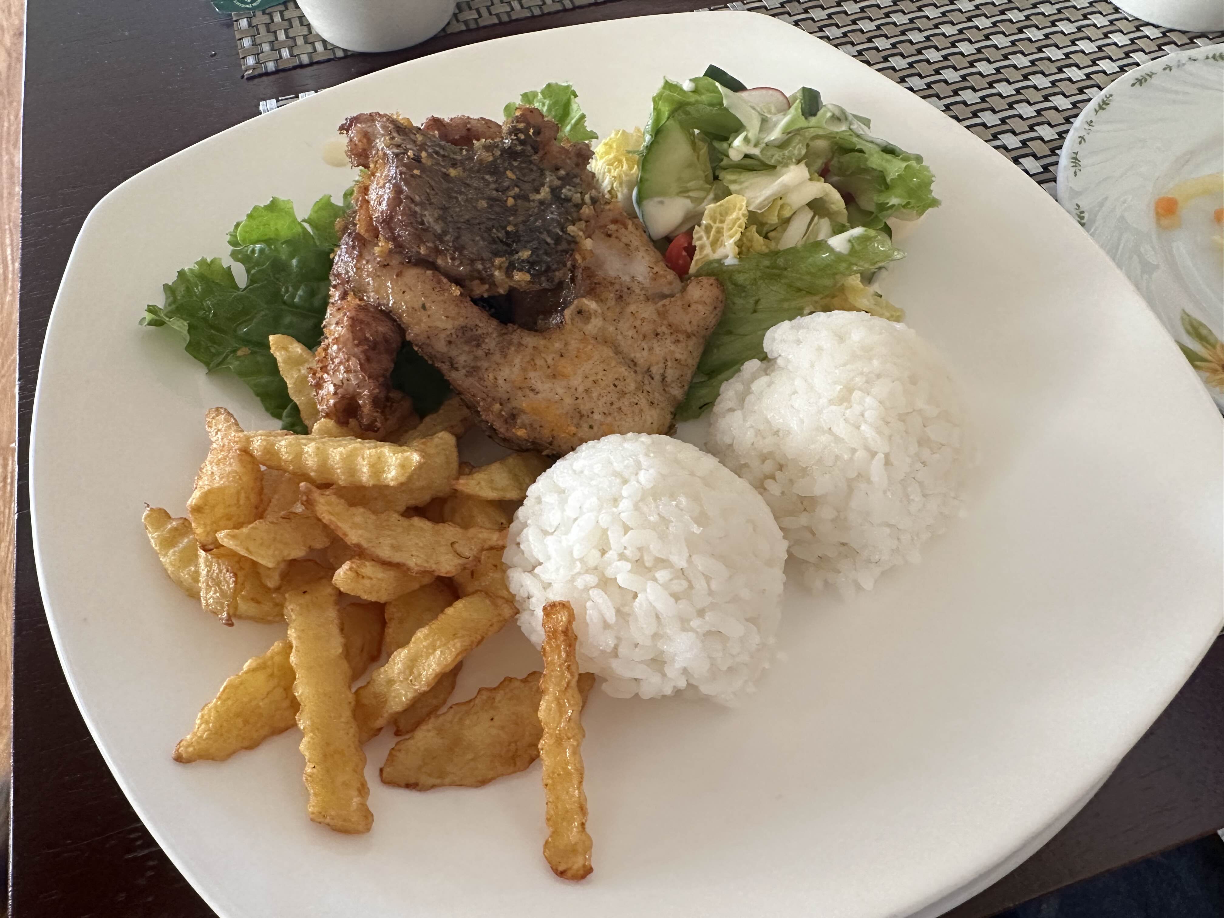 어기호수에 있는 숙소에 마련된 식당에서 먹은 석식. 내가 여행할 때쯤엔 해가 8시에 떨어지고 그래서 6시 넘어서 먹은 건데도 뭔가 아침스럽게 나왔다. 호수 근처라서 신기하게 생선을 먹었다. 내가 갔던 시즌에는 생선을 잡을 수 없는 시즌이라고 했다. 아마도 뭐 냉동 생선이거나 그럴 듯. 몽골에서 처음 먹는 생선 요리였다. 맛은 무난했음!