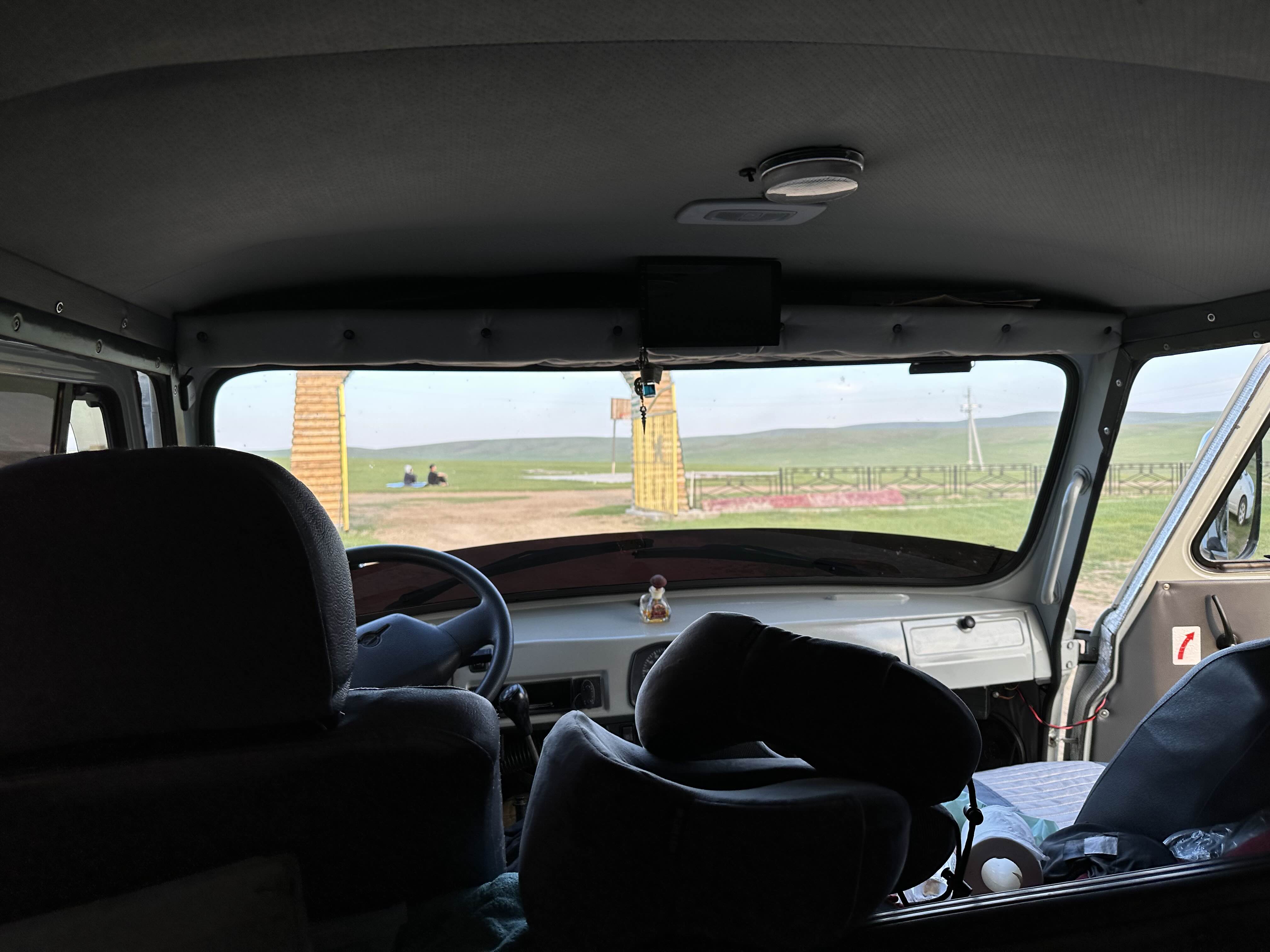 푸르공을 타고 어기호수를 내려다볼 수 있는 언덕으로 향하는 중. 스타렉스에 비해 승차감이 다를 줄 알았는데 생각보다 좋았다. 차가 많이 흔들리는 만큼 의자가 푹신푹신하다고 해야 하나? 생각보다 잘 관리된 차였다. 운전해 주시는 기사분이 꼼꼼하게 잘 관리하는 듯한 모습이었다. 의자만 놓고 봤을 때는 푸르공이 더 푹신하고 충격을 잘 흡수하는 느낌. 뭐 전체적인 승차감은 엄청 다르진 않았다. 다만 푸르공은 에어컨이 없어서 더운 날씨에는 오래 타기 힘들겠다 싶었음.