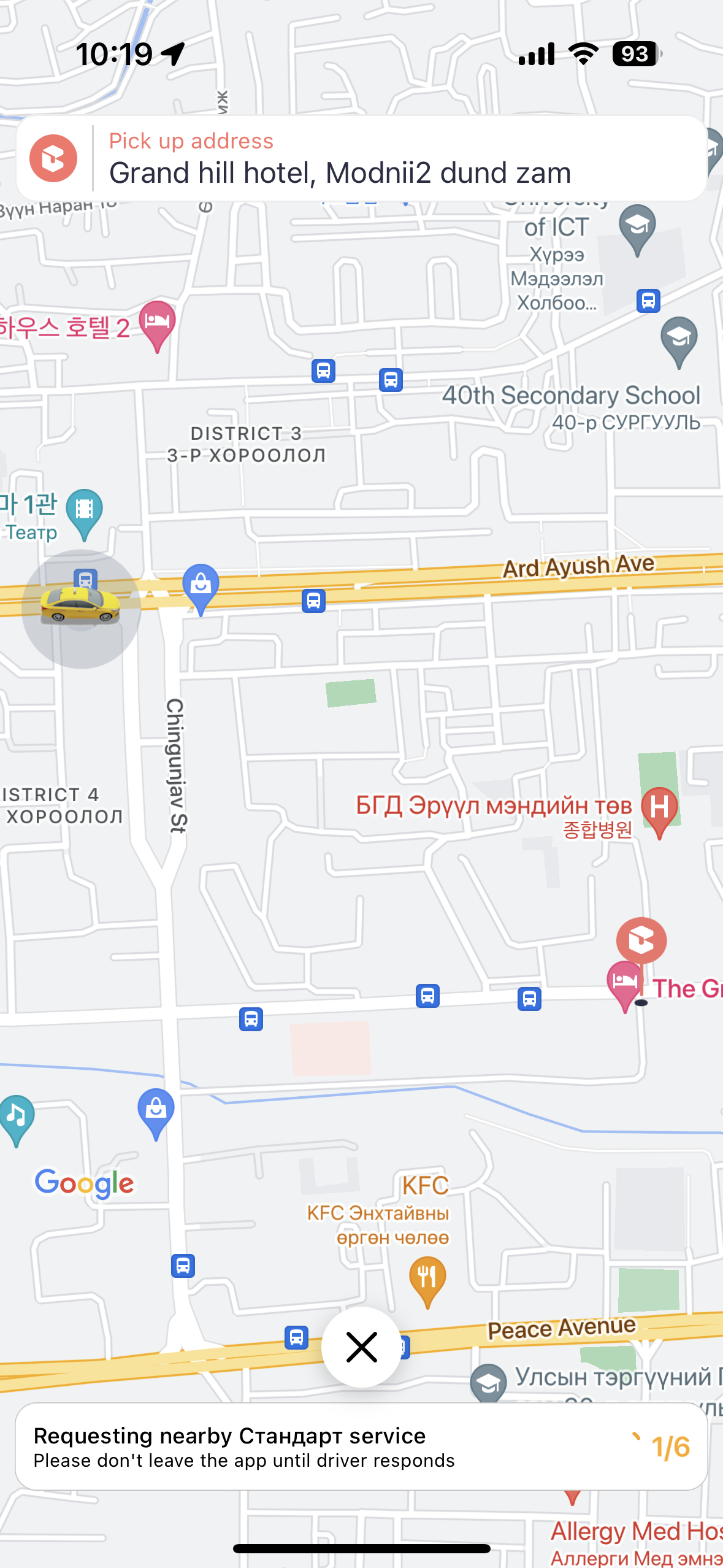 아마 위에 목적지명(몽골어)을 준비하라고 한 게 의아했을 수 있다. 그냥 기사님이 알아서 앱보고 목적지로 데려다주는 게 아닌가? 할 수 있는데, 우리나라 앱과는 조금 다르다.
