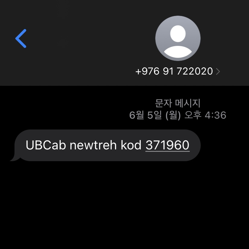 - 몽골 유심 폰 : 몽골 폰이 필요한 이유는 회원가입 시 인증이 필요하다. 아래와 같이 문자를 받아야 한다. 나는 통화가 되는 유심을 여행사에서 지급받았는데, 문자 수신이 잘 됐다. 만약 유심이 데이터만 되는 거면 조금 어려움이 있을까? 싶기도 하다.